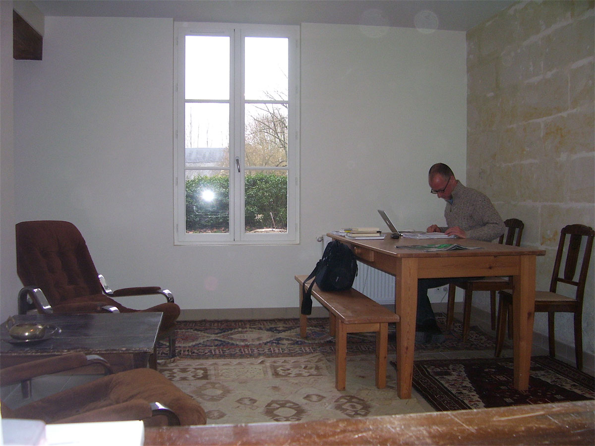 - Simon Boudvin, TECTOEDRES 02 (SEMT-Saint-Denis), 2012, poussière de gravats, collectée et tamisée sur le site de SEMT-Pielstick à Saint-Denis, saupoudrée sur les plaques reproduisant les parcelles au 1:100.