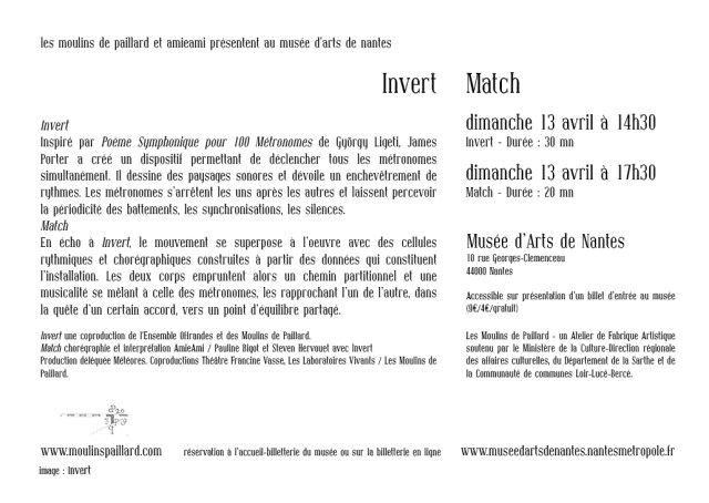 Invert et Match d’AmieAmi ◊ 13 avril à 14h30 et 17h30 au Musée d’Arts de Nantes << english/français >>