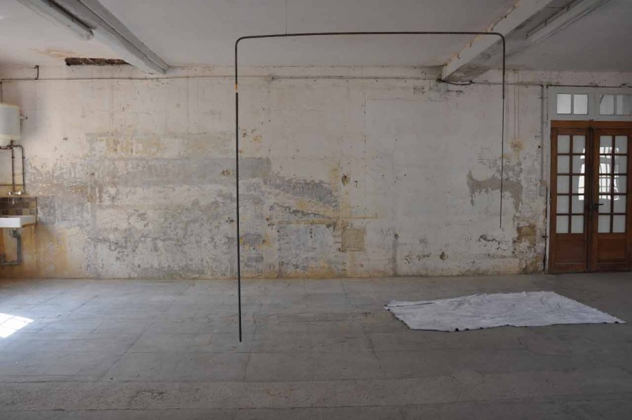 Katinka Bock. PERFECT BALANCE, 2012. Metal and cable. 285x210x1,4cmGuillaume Leblon. UNTITLED, 2012. Felt and white paint . 160 cm x 80 cm
